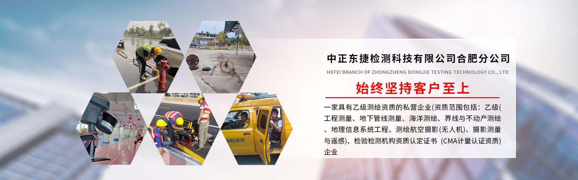 中正东捷检测科技有限公司合肥分公司是一家具有乙级测绘资质的私营企业(资质范围包括:乙级(工程测量、地下管线测量、海洋测绘、界线与不动产测绘、地理信息系统工程、测绘航空摄影(无人机)、摄影测量与遥感)、检验检测机构资质认定证书 (CMA计量认证资质)企业。成立于2013年8月20日,是“高新技术认定企业”、连续多年“守合同重信用”、连续三年质量信用AAA级企业。2016年2月通过ISO2000质量认证,2018年6月通过了质量、环境、职业健康与安全三体系认证。